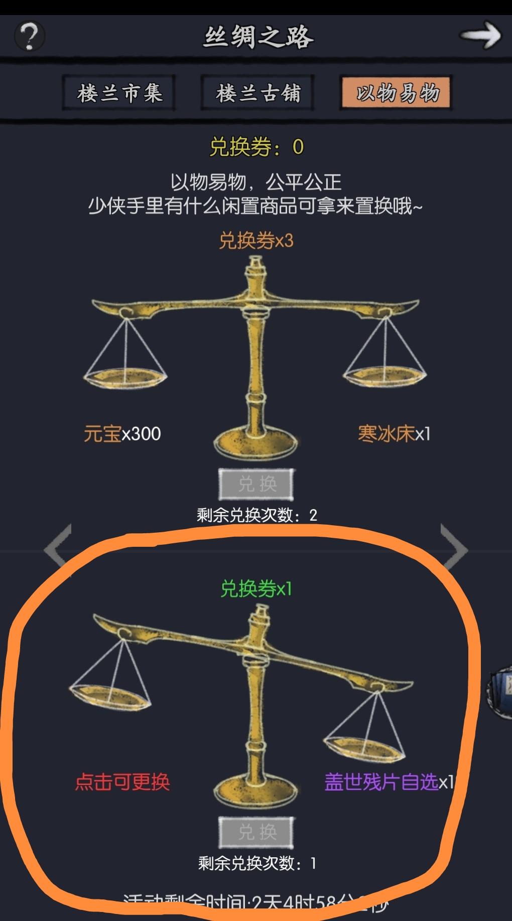 之前还以为是轮换着来,经历了几期丝绸之路才知道是一直只有盖世能换。豪杰和宗师通用残片不给换吗?不是,这点普通侠客的资源你都要卡?