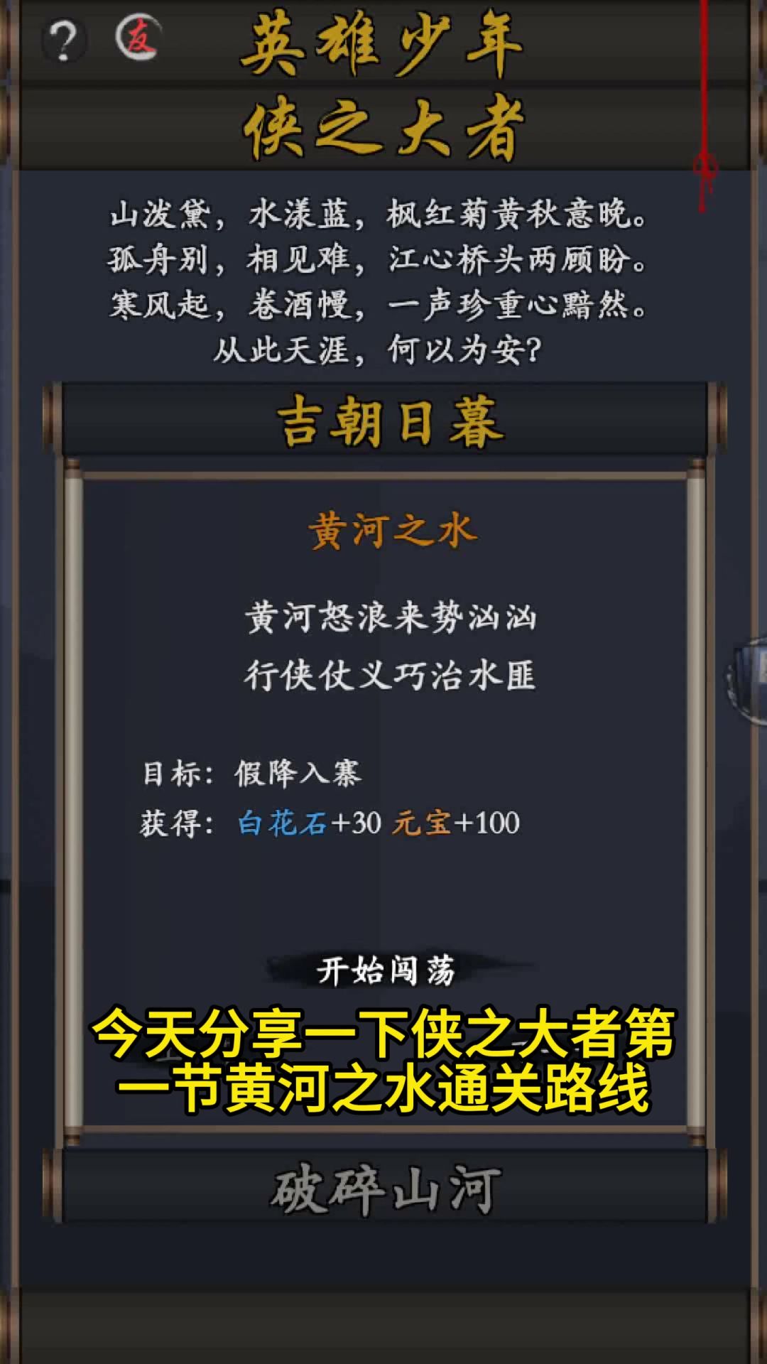 黄河之水通关路线#今天游戏圈发生了啥 #你的江湖 #你的江湖攻略 #单机游戏 #发现好游戏 #国风 #欧皇附体 #武侠 #浅评一下 #游戏日常