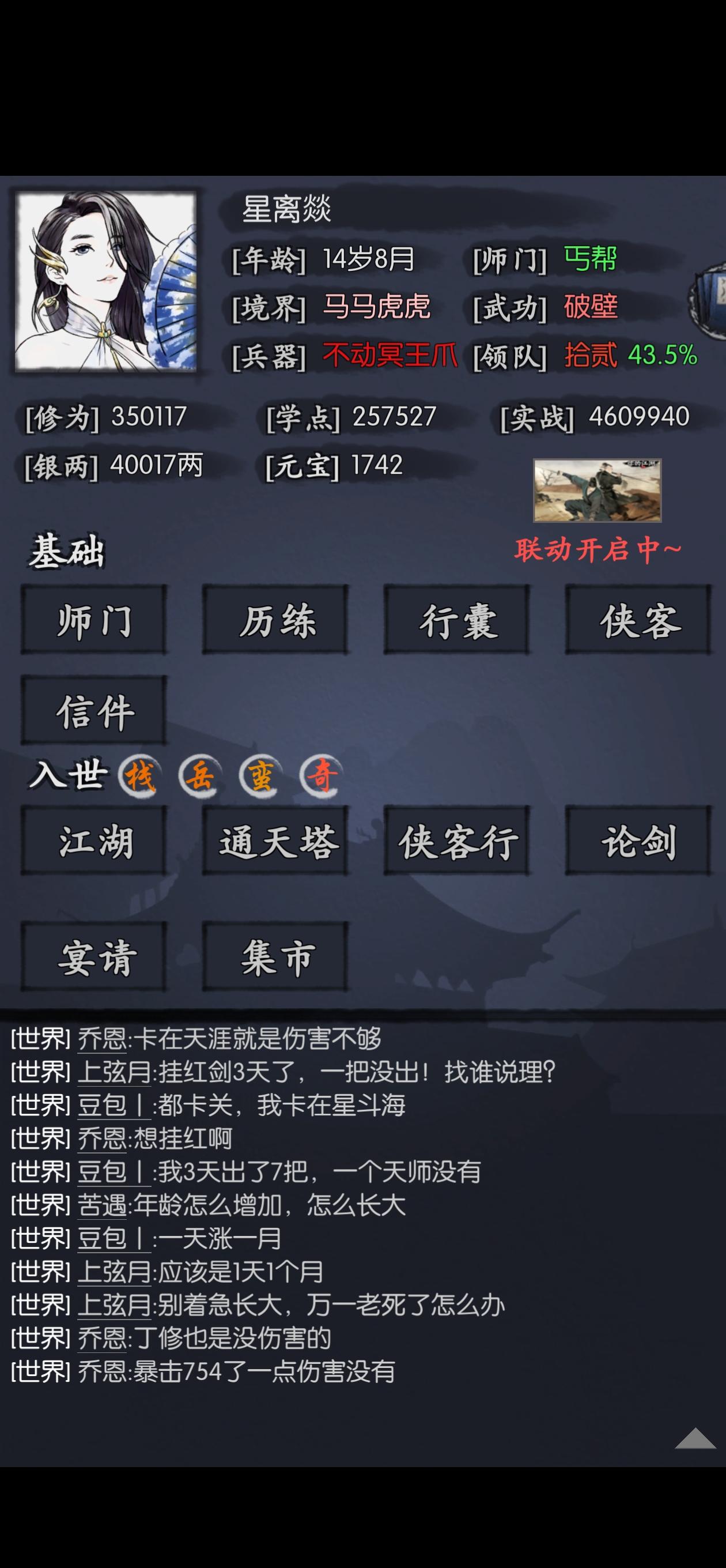 基本可以算0氪,就氪了一个6元林,一个6元客栈。5号9点开的区,8号6点钟领10,木子丁修觉醒,萧峰信物不够觉醒,从天涯甲一直打到八卦月才卡住。胡旭点开2技能配丁修,丁修不死胡就不会死。