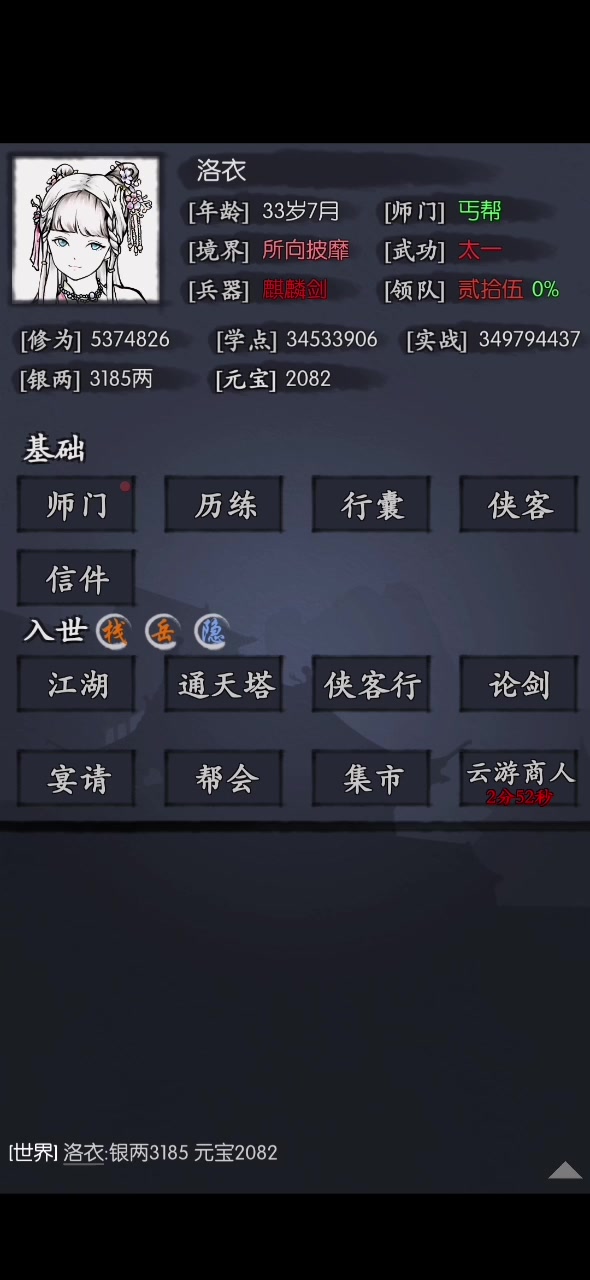 银两花没啦,开箱! 开之前: 银两 3185 元宝2082 开之后: 银两553285 元宝3512 云游商人我感觉我又行了!