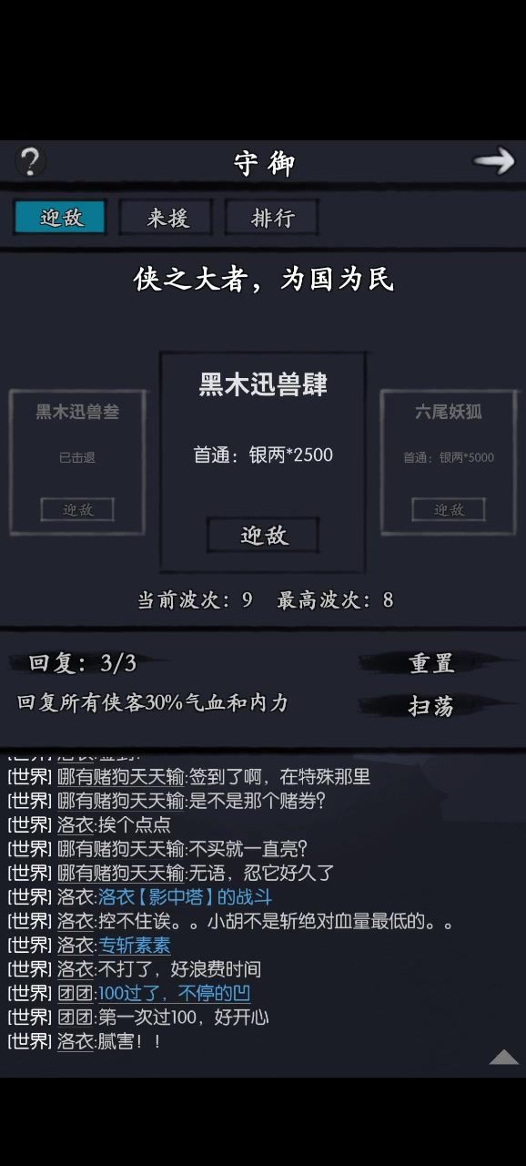 洛衣师姐的推荐,木子真挺好用的,前期输出爆炸,还能刮后排,回合外还能补伤害,反疗还是多回合(我的修罗剑是9级),稍微抢一点林的修习录啥的,瑕不掩瑜,比公孙培养成本还低,侠客行也能用