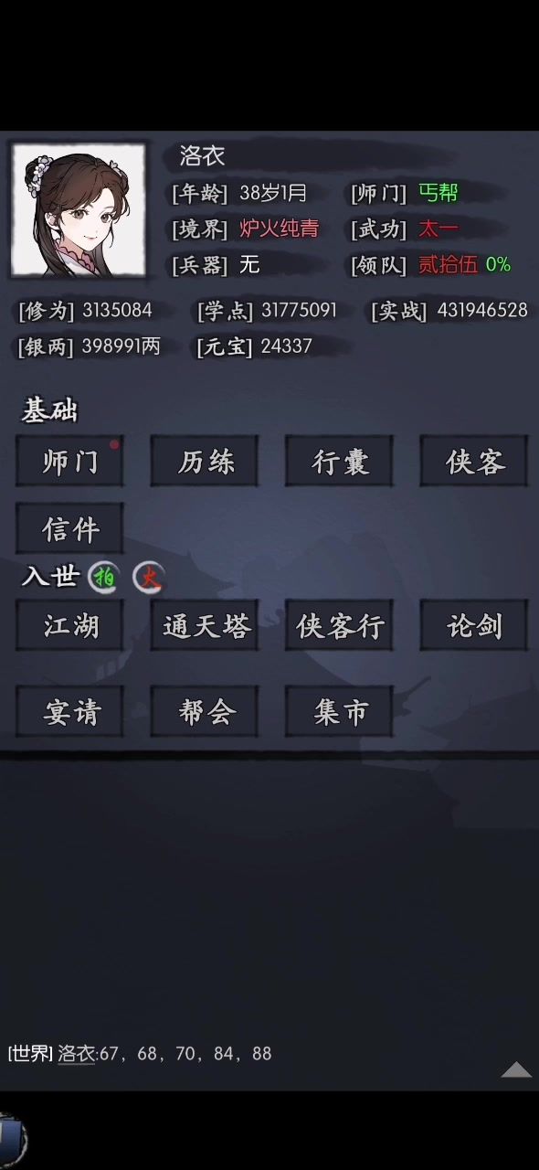 这个号要啥没啥,几乎没能用的,每天也就是打打历练,云游都混不满,没想到这样10月也能打到八卦宫,恒山前期是真强