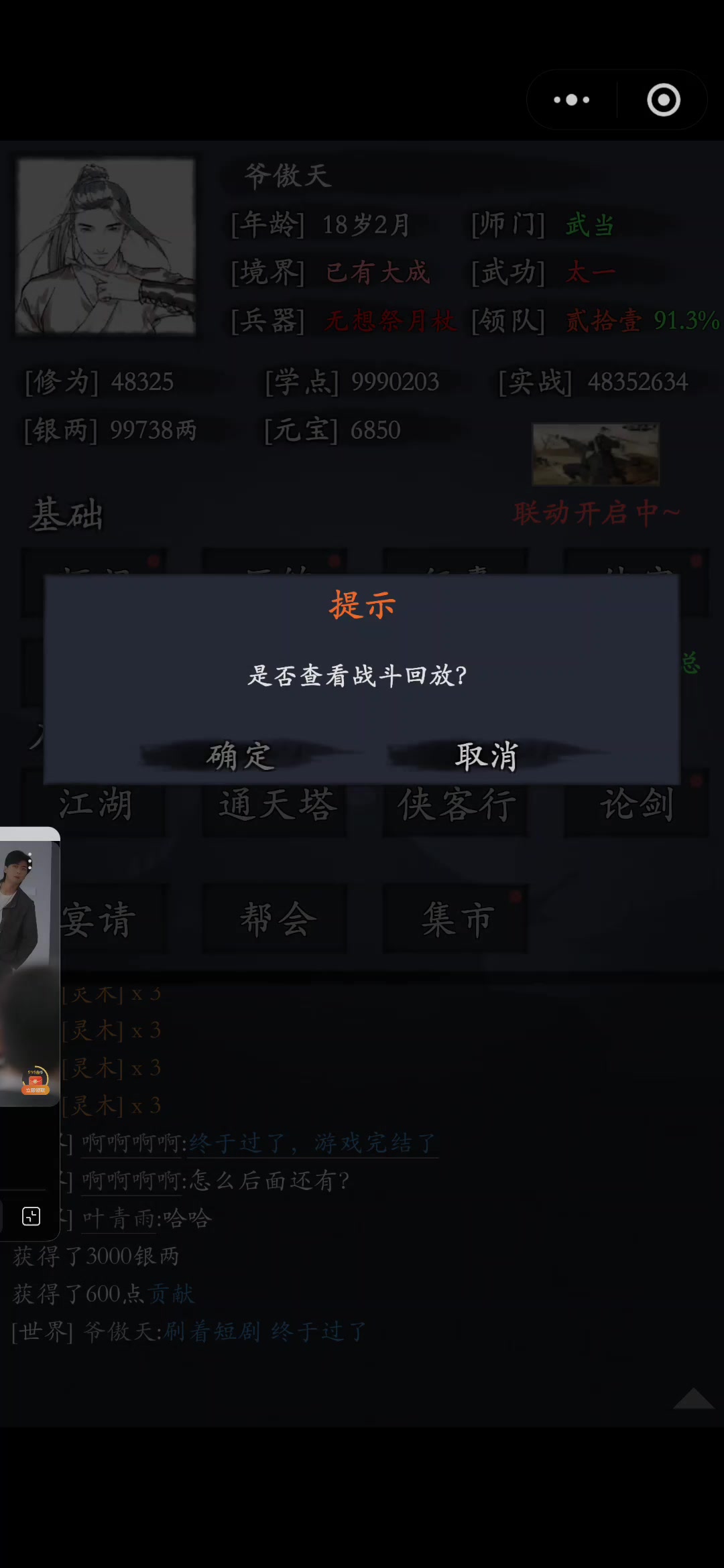 基本可以算0氪,就氪了一个6元林,一个6元客栈。5号9点开的区,8号6点钟领10,木子丁修觉醒,萧峰信物不够觉醒,从天涯甲一直打到八卦月才卡住。胡旭点开2技能配丁修,丁修不死胡就不会死。