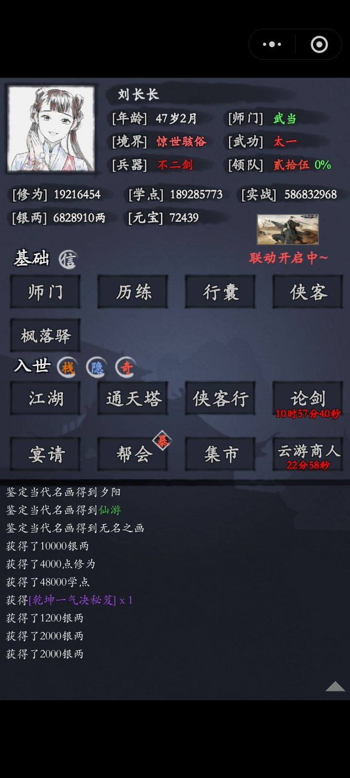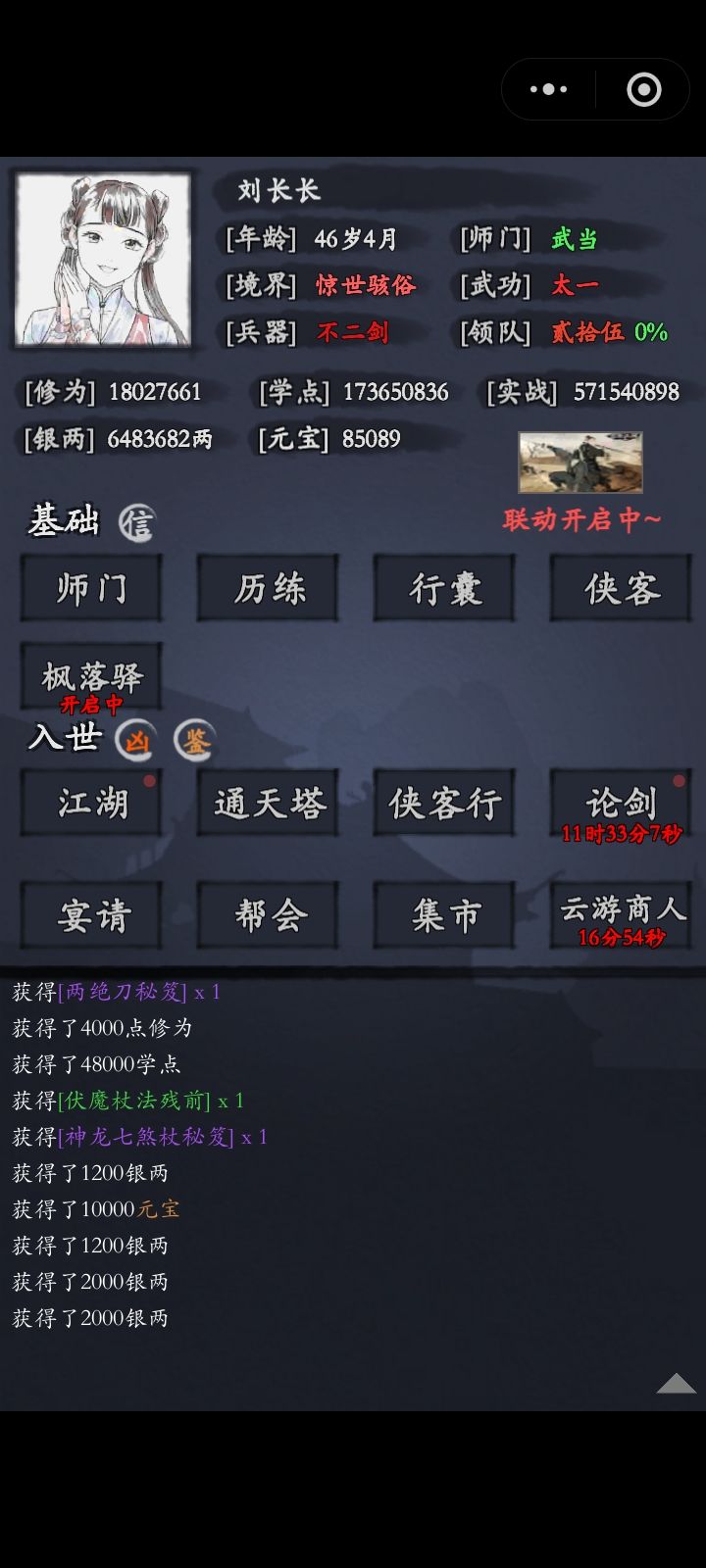 这篇速成攻略只适合这几天开区能选到丁修的区。投入毛爷爷总共4张,其中联动两天1张,其他包括月卡,矿石礼,栈道,行侠客,零零碎碎的加起来差不多3张。以上都不是重点,氪了快点不氪也就慢两天。开局书香,少林刀棍(学仁义刀,普度杖法的狮子摇头)领队4抽卡,必须要有公孙,海棠仪瑶有其中一个就行,比较主要的侠客:公孙,岳大剪,胡旭,木子晴,云飞雕,悠悠,何惕守,谛燎,。推图站位如上图3,基本思路丁
