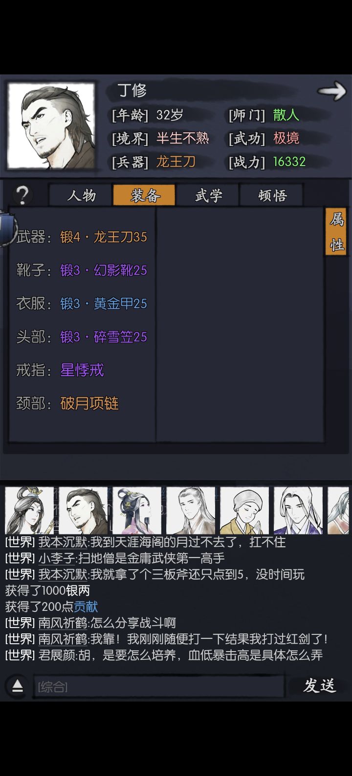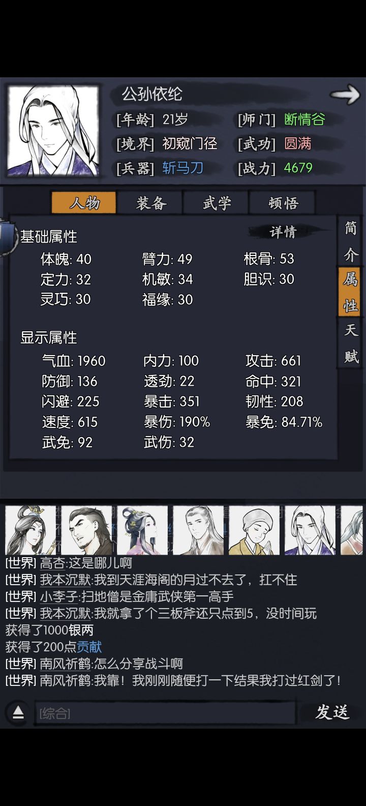 #沈炼攻略 ##你的江湖 第一次发哦,说不上攻略,一点点个人的思路,高闪避,然后尽量高命中。主要是配合有C能力的侠客,提供稳定暴击机会,一家之言,欢迎批评指正