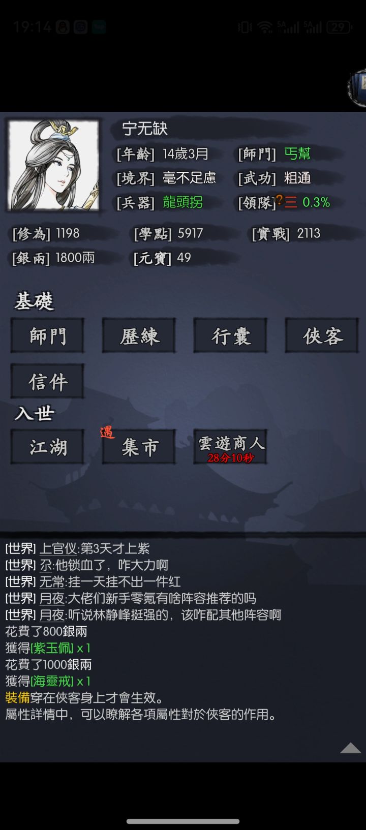 还有个自选,还差什么侠客,攻略看的不是很懂,主角是商贾隐门,应该发展什么流派