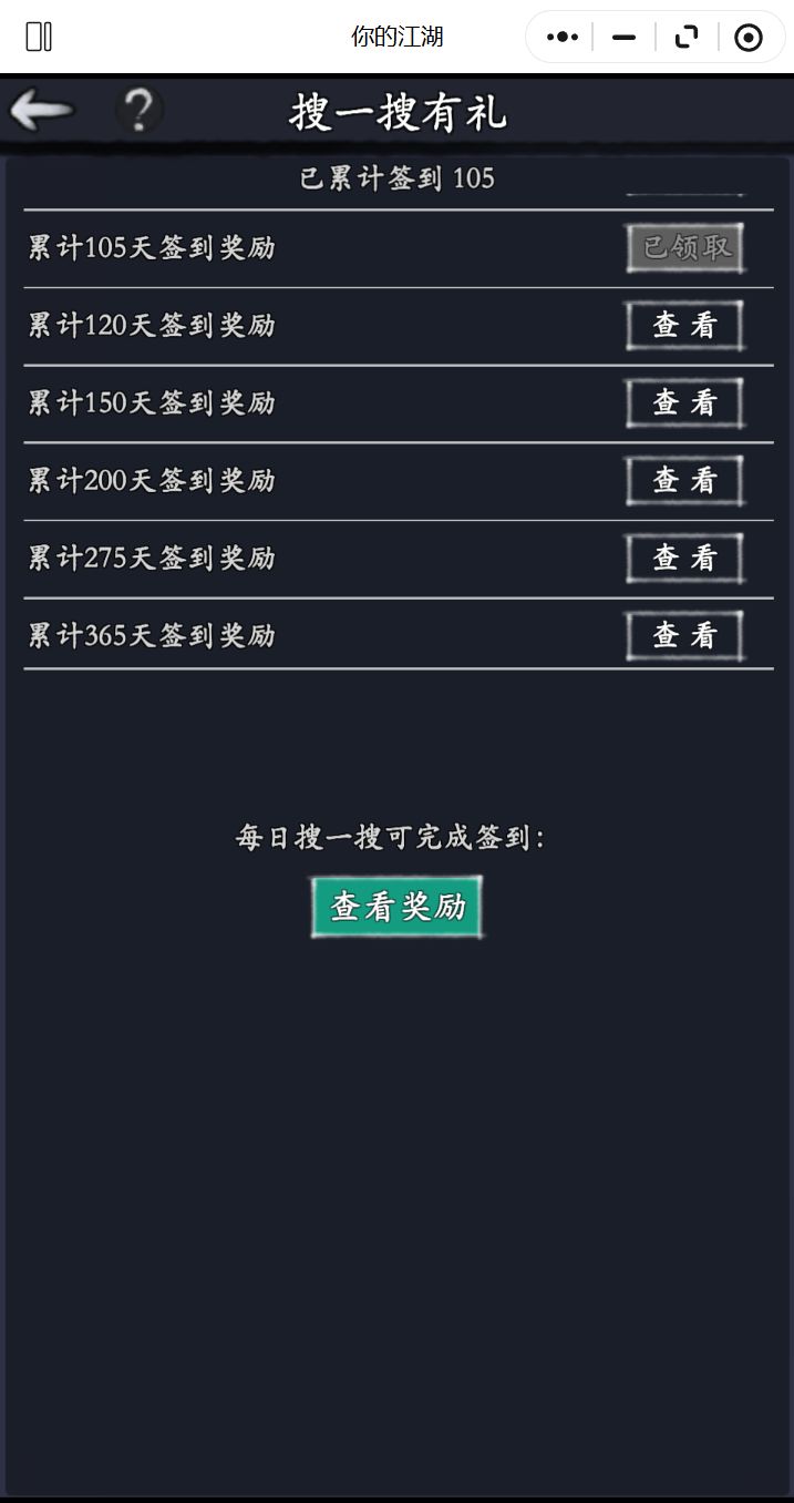 这个号签到105天,再加上之前瞎玩的一些号,差不多也有小半年了吧,但是慢慢的,身边的朋友们没有一开始活跃了,还有一些慢慢的就不说话了,退坑了老实说,现在感觉有点没事儿做了,如图,以前我能肝通天肝到三四点,每次上线都感觉是有事情做的,但是现在通天历练打完,每天上线就是收收菜,有活动瞥一眼,没活动就睡了其实我还是有自己的小目标的,影中还没打完,江湖还有几关没过,我是属于