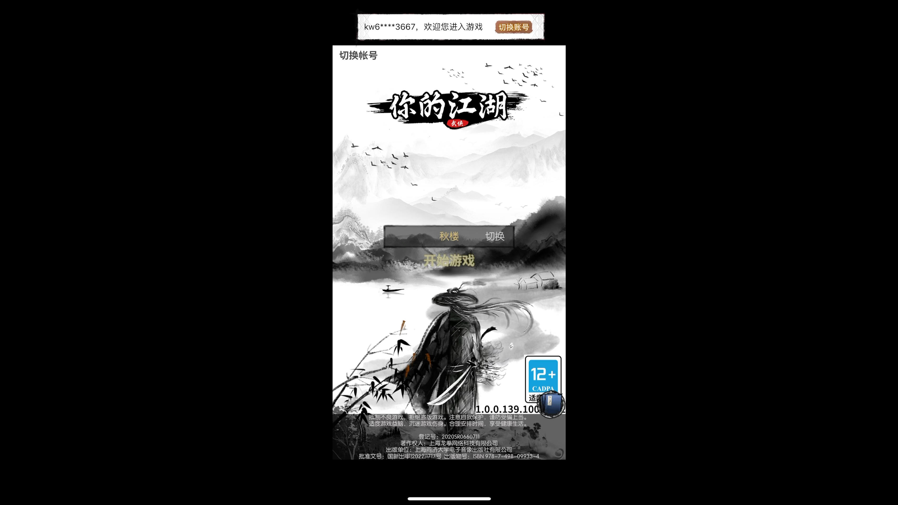 一款竖屏的武侠文字手游!