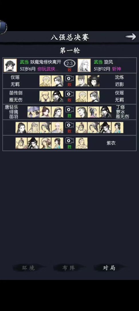 拿胜邪之前小林用爆伤绿剑。现在有1技雁,用他1技能武学给小林加暴击爆伤剪死→1技雁武学→1技萝武学→小林平a猴棍主,林,萝,雁,海,杨,剪,根据对面站位,谁行上谁。除了送死的剪和林有固定装备,其余人保证基础爆免发挥自己的作用为准。海第一天1-2无脑升到9,1-1慢慢升主的面板爆免尽量多,这样才有机会项链才有机会换圣月撑武免来提高第三回合武学回合的坦度。主躲过儿身后的时候,俩人血量可以相近一起吃药王,前提是过儿有基本的爆免来吃鞭的红字没掉大血