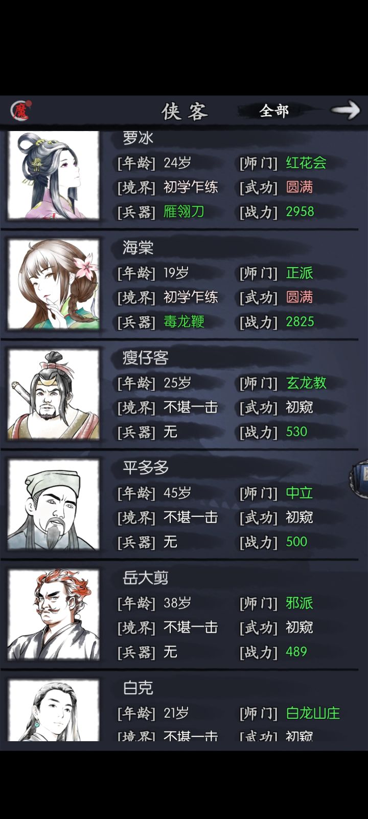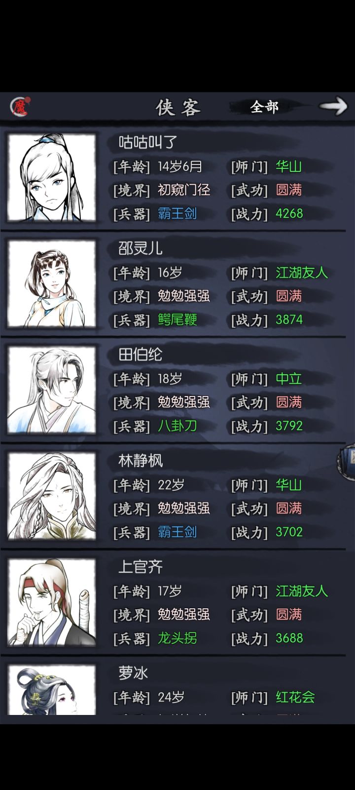 拿胜邪之前小林用爆伤绿剑。现在有1技雁,用他1技能武学给小林加暴击爆伤剪死→1技雁武学→1技萝武学→小林平a猴棍主,林,萝,雁,海,杨,剪,根据对面站位,谁行上谁。除了送死的剪和林有固定装备,其余人保证基础爆免发挥自己的作用为准。海第一天1-2无脑升到9,1-1慢慢升主的面板爆免尽量多,这样才有机会项链才有机会换圣月撑武免来提高第三回合武学回合的坦度。主躲过儿身后的时候,俩人血量可以相近一起吃药王,前提是过儿有基本的爆免来吃鞭的红字没掉大血
