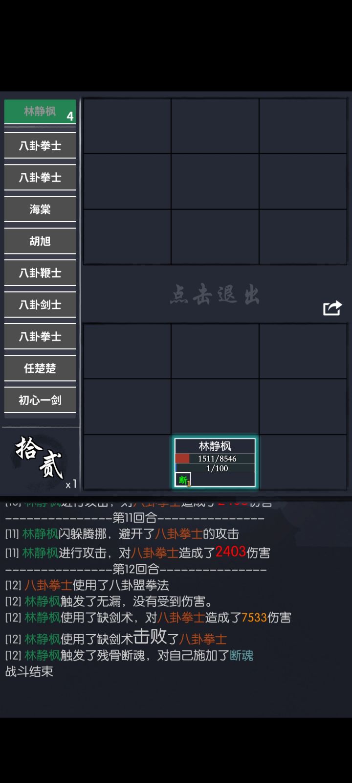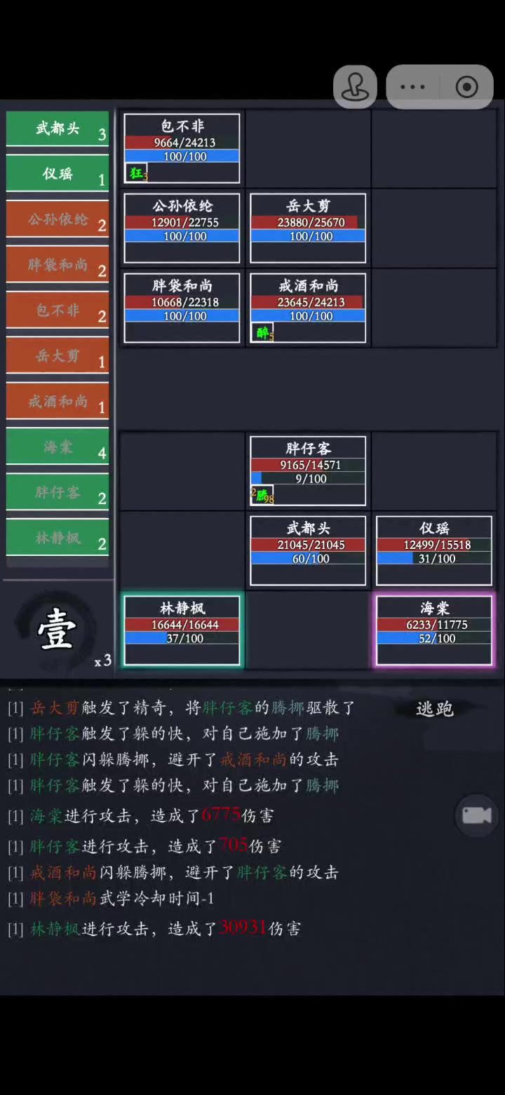 拿胜邪之前小林用爆伤绿剑。现在有1技雁,用他1技能武学给小林加暴击爆伤剪死→1技雁武学→1技萝武学→小林平a猴棍主,林,萝,雁,海,杨,剪,根据对面站位,谁行上谁。除了送死的剪和林有固定装备,其余人保证基础爆免发挥自己的作用为准。海第一天1-2无脑升到9,1-1慢慢升主的面板爆免尽量多,这样才有机会项链才有机会换圣月撑武免来提高第三回合武学回合的坦度。主躲过儿身后的时候,俩人血量可以相近一起吃药王,前提是过儿有基本的爆免来吃鞭的红字没掉大血