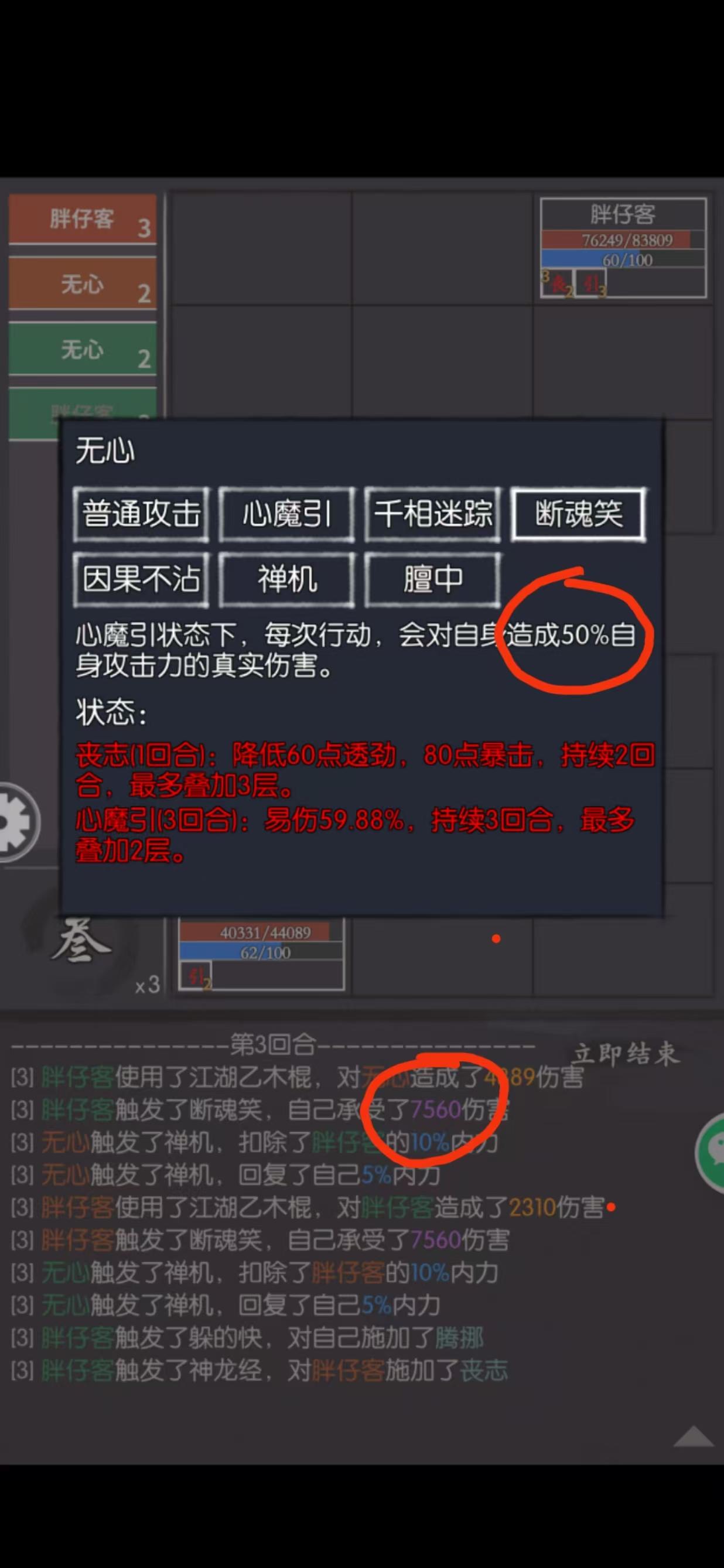 推测效果为双方同时上阵无心时,心魔引会打出双倍伤害