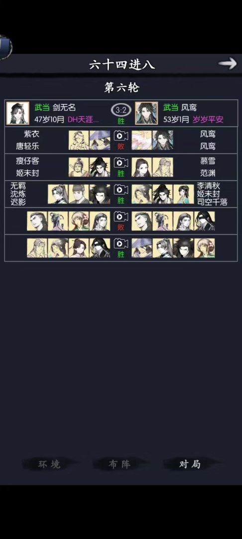 拿胜邪之前小林用爆伤绿剑。现在有1技雁,用他1技能武学给小林加暴击爆伤剪死→1技雁武学→1技萝武学→小林平a猴棍主,林,萝,雁,海,杨,剪,根据对面站位,谁行上谁。除了送死的剪和林有固定装备,其余人保证基础爆免发挥自己的作用为准。海第一天1-2无脑升到9,1-1慢慢升主的面板爆免尽量多,这样才有机会项链才有机会换圣月撑武免来提高第三回合武学回合的坦度。主躲过儿身后的时候,俩人血量可以相近一起吃药王,前提是过儿有基本的爆免来吃鞭的红字没掉大血