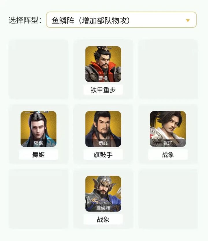 本期为各位主公带来演义模式夏侯渊传1-10关的通关阵容攻略,受暴击、概率命中技能的影响,如果遇到阵容通过失败的情况,就多试几次就有几率通过哦。东征徐州(一)武将兵种搭配郭嘉(舞姬),曹操(铁甲重步),张辽(战象),夏侯渊(战象),荀彧(旗鼓手)采用阵型武将站位东征徐州(二)武将兵种搭配荀攸(旗鼓手),夏侯惇(战象),曹操(冲车),乐进(铁甲重步),夏侯渊(龙骑兵)采用阵型武将站位虎