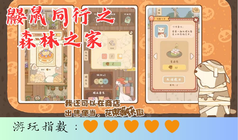 适合两个人一起玩的游戏。 玩家在里边可以选择单身鼠、打工鼠、居家鼠三种身份其中之一来作为自己的身份。 一个扮演打工鼠鼠,通完成订单等游戏方式进行打工或者通过种植茶和果树来卖茶叶和果汁来赚钱;一个扮演居家鼠鼠,通过制作花束、做饭、制作手工艺等来赚钱。整体画风是卡通可爱型,更多的还是二人的一种交互体验,能拉进彼此间的关系。里行打卡发游戏里的朋友圈。 #发现好游戏