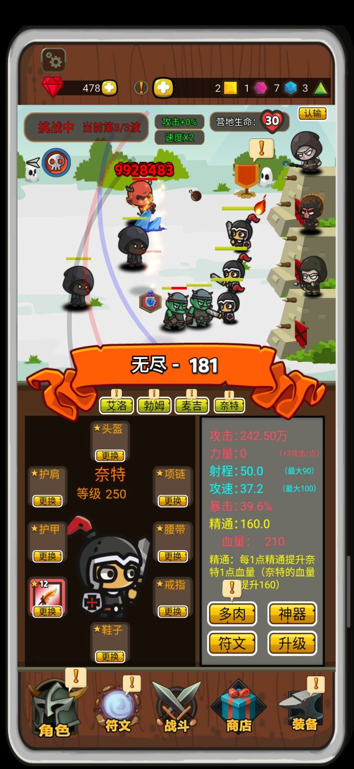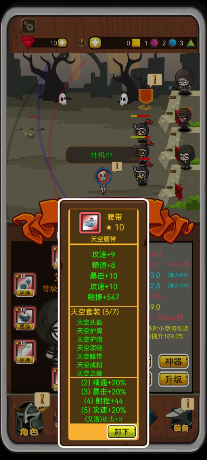 这游戏真废手指,手指都点麻了,转生一次又重新合装备,实在是点的手指痛,我玩不下去了。这游戏到后面重点就是升级,升到250,啥也不带都200多万攻击,带齐套装上千万,随便秒,后面很无聊,无限循环,只要能肝手指受得了攻击上亿都不是问题。