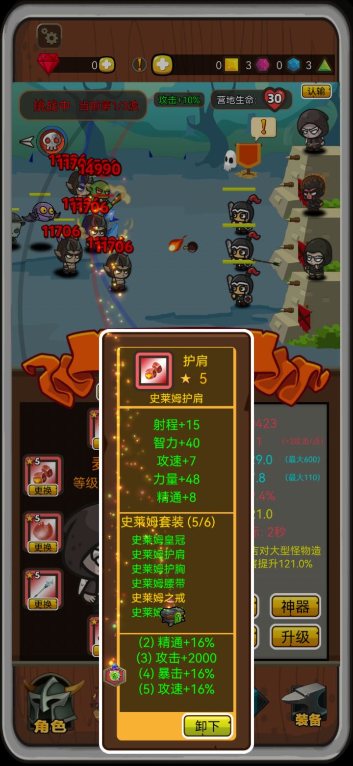这游戏真废手指,手指都点麻了,转生一次又重新合装备,实在是点的手指痛,我玩不下去了。这游戏到后面重点就是升级,升到250,啥也不带都200多万攻击,带齐套装上千万,随便秒,后面很无聊,无限循环,只要能肝手指受得了攻击上亿都不是问题。