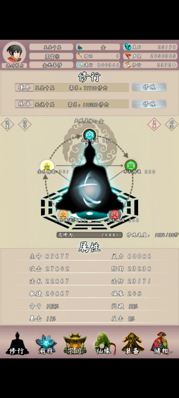 7、宗门:五大宗门,分别对应金-木-水-火- 土。