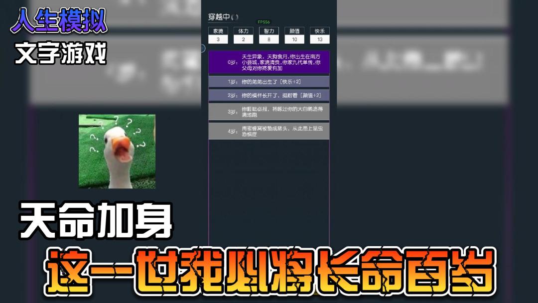 【文字游戏】一款娱乐休闲的文字人生模拟器,这一世我天命加身,必将长命百岁,喜欢的小伙伴可以点击视频下方的开始游戏试玩体验