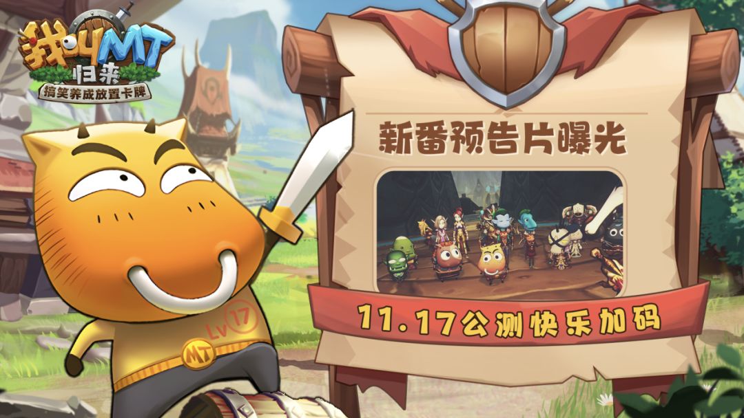 各位兄弟们好久不见,好消息,好消息《我叫MT:归来》版号已正式下发啦!目前游戏预约正在火热进行中,快喊上你志同道合的朋友,一起来组团吧!产品也将于近期开启新一轮测试,关注公众号:“我叫MT归来手游”(WJMTGL),随时获取最新资讯! 作为一款由同名动画正版授权的搞笑养成放置卡牌手游,《我叫MT:归来》力求为玩家原汁原味重现经典剧情,让玩家在体验游戏的同时,感受冒险旅途中的喜怒哀乐! 全员回归 向