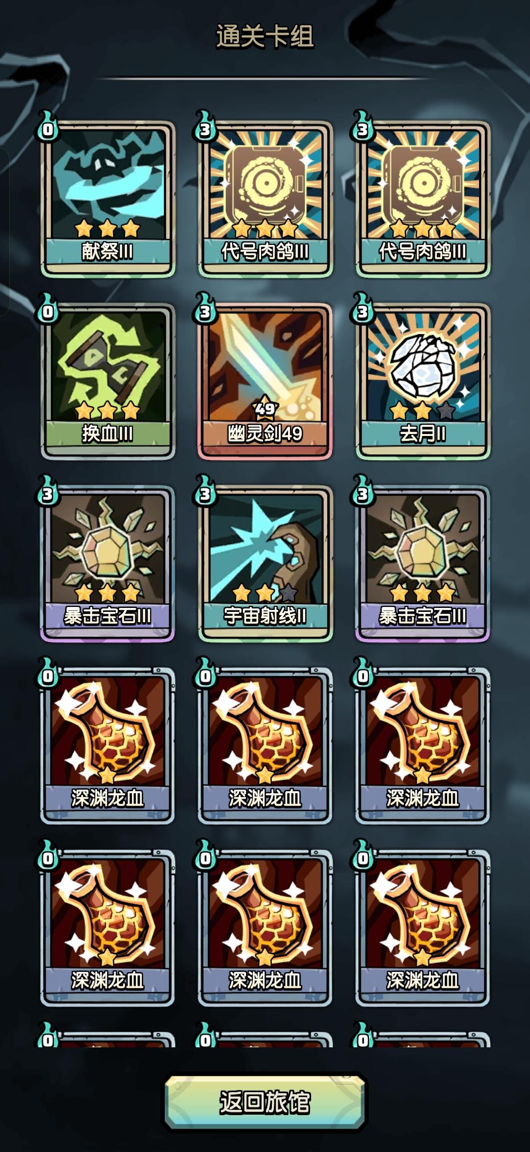选猫头晕挂灵魂出窍来刷金币,基本上第一层就能刷到2000。手办可以拿普通手办,不用手办也行。宝物可以刷一个初始的辣椒,没有辣椒打得慢一点。另外有几个小细节1.任务不急着做,可以留到后面一起做,而且不是所有任务都必须完成。2.尖塔也可以完成任务。3.旅馆可以先尽可能都招募进来,等后面再慢慢删。#代号肉鸽