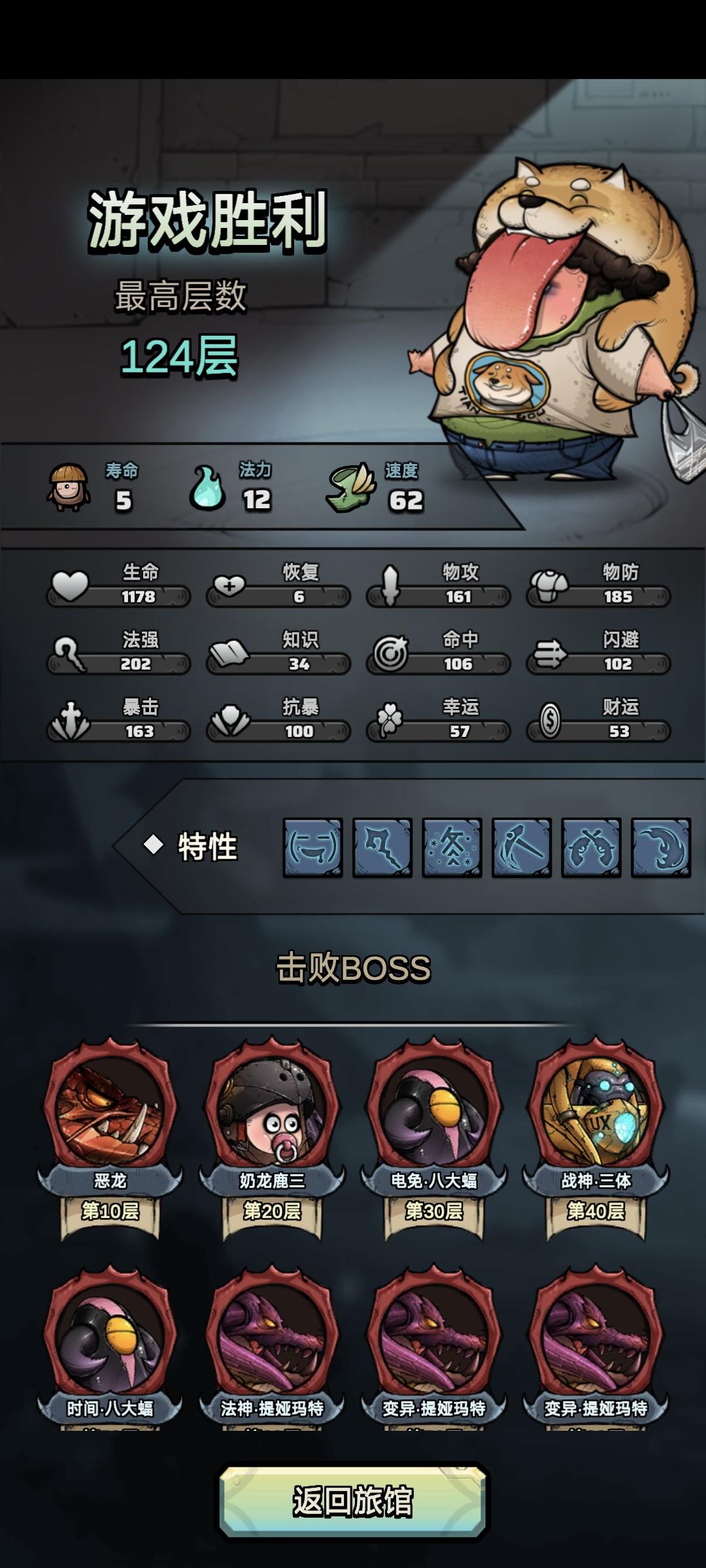 结果只有124层第一次玩这个图,第一次用舔狗,流派是冰冻和冰冻叠加灼烧,主要操作是使用一张宝石手套基本没了,金币过剩,买的药水更是不想买了。结果结束了,结束了也好,打了一天了,太杀时间了。有游戏模式的手机一定要开游戏模式,之前没开卡得不行