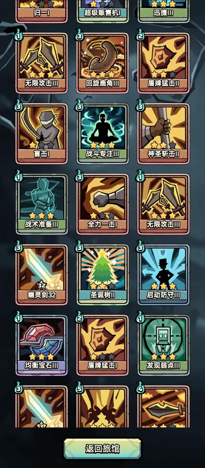 奇莫:圣诞奇莫、黑圣诞奇莫(升级升技能)初始最好可以刷自带幽灵剑使用快速模式,全程灵活拿卡也可以不拿遇到诅咒宝物挑水晶多的拿(反正不会死)水晶商店也可以升级卡牌(4水晶)遇到精英怪和哥布林选哥布林困1到困9都可以轻松搞定