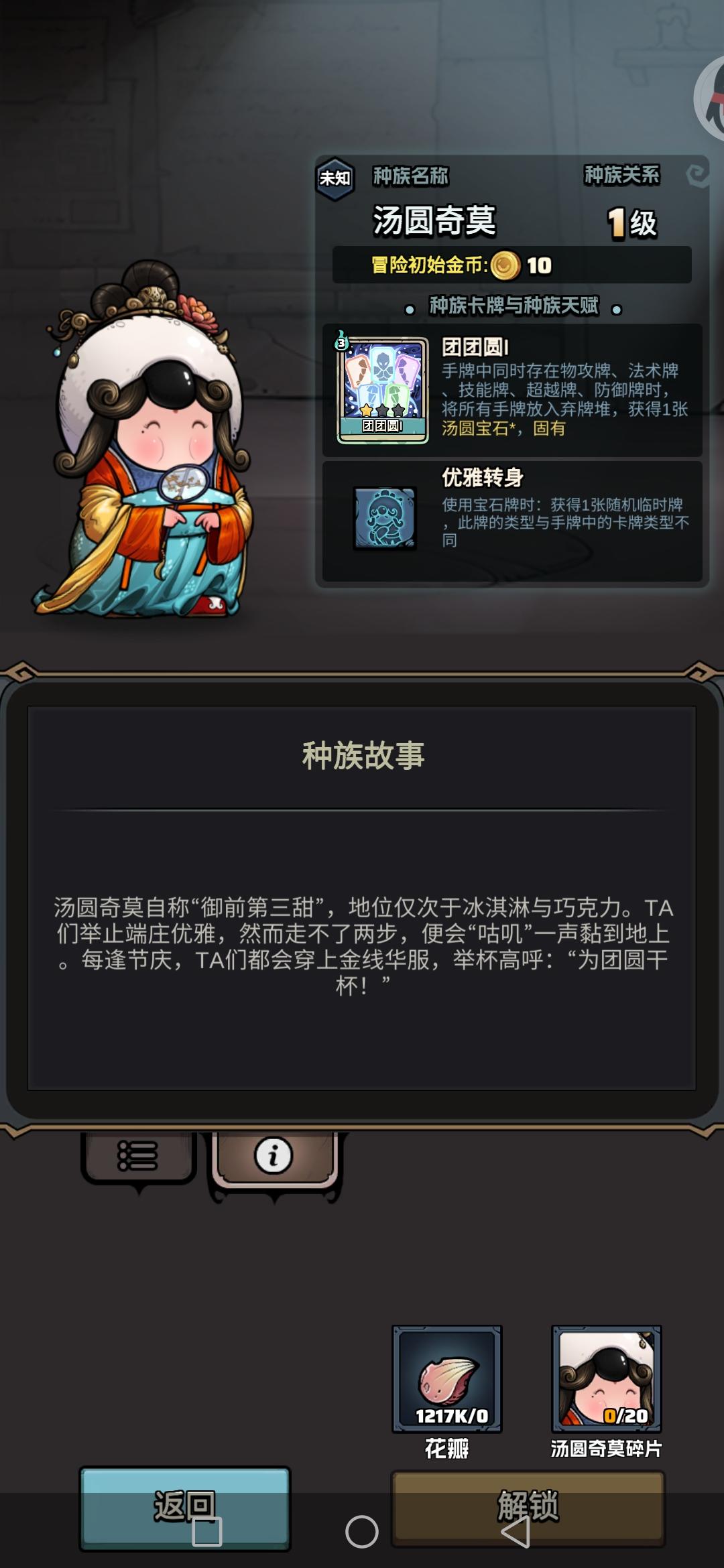 一、引言 好久没更新种族科普系列了,昨天抽出了汤圆奇莫,做成就时发现还挺有意思的,今天就来聊聊,汤圆奇莫的使用心得~二、种族专属卡牌及天赋种族专属卡牌:团团圆:1费超越卡,想要生效必须手牌中同时存在超越牌、物攻牌、法术牌、技能牌、防御牌5种卡牌。估计大多萌新看到这就懵逼了。这怎么用啊,四个职业里物攻牌、法术牌好像就没有同时存在的?我们接着往下聊~种族专属