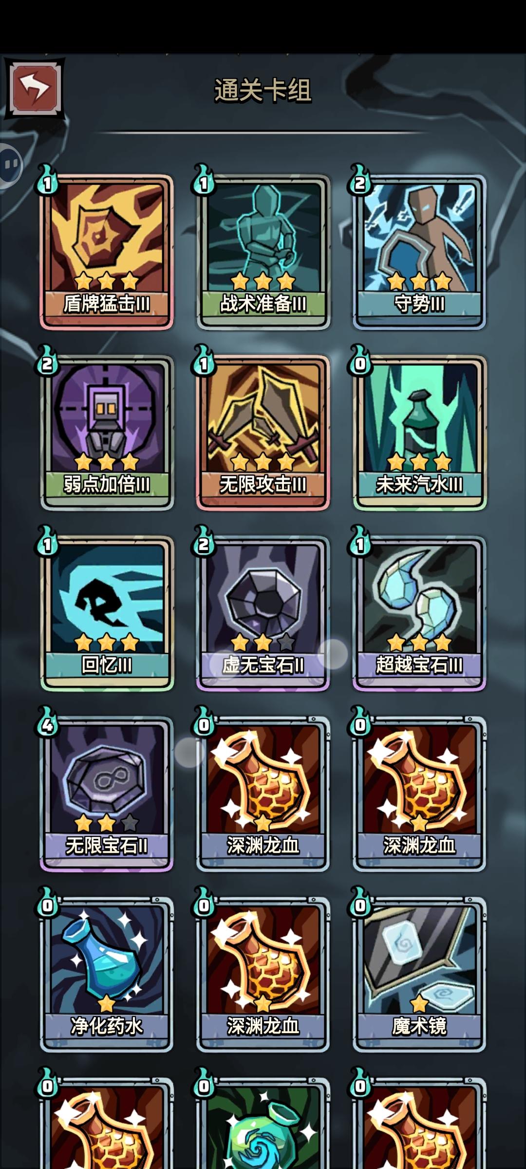 [表情_斜眼笑]效果和幽灵剑战士同理。但是我的这个好练。 牛脾气,极速施法两个核心天赋。其余的随意。宝物核心火龙蛋。可有可无。其他的随意拿。卡牌除了攻击牌。随意拿。越多越好。卡组里的攻击牌只留下回力标。剩下的就攒钱吧。遇到金币商店就清空。大肆购买。只要是增加⭐级的卡牌。不用管。就买买买。什么超越牌。宝石牌。挑2星的拿。没有就拿可升级的。路人甲哥哥说的对。2星比3⭐划算。所以不要升3星。不要升3星。