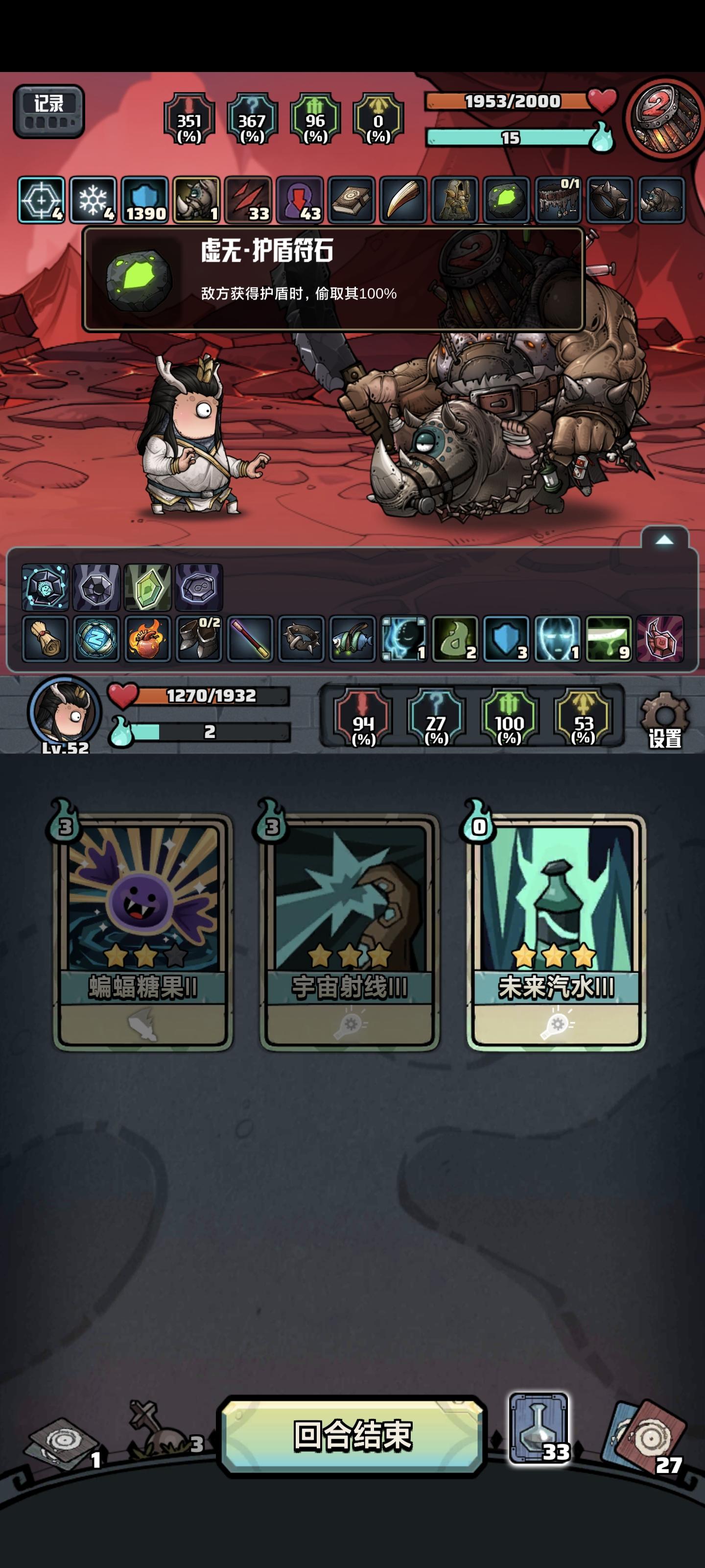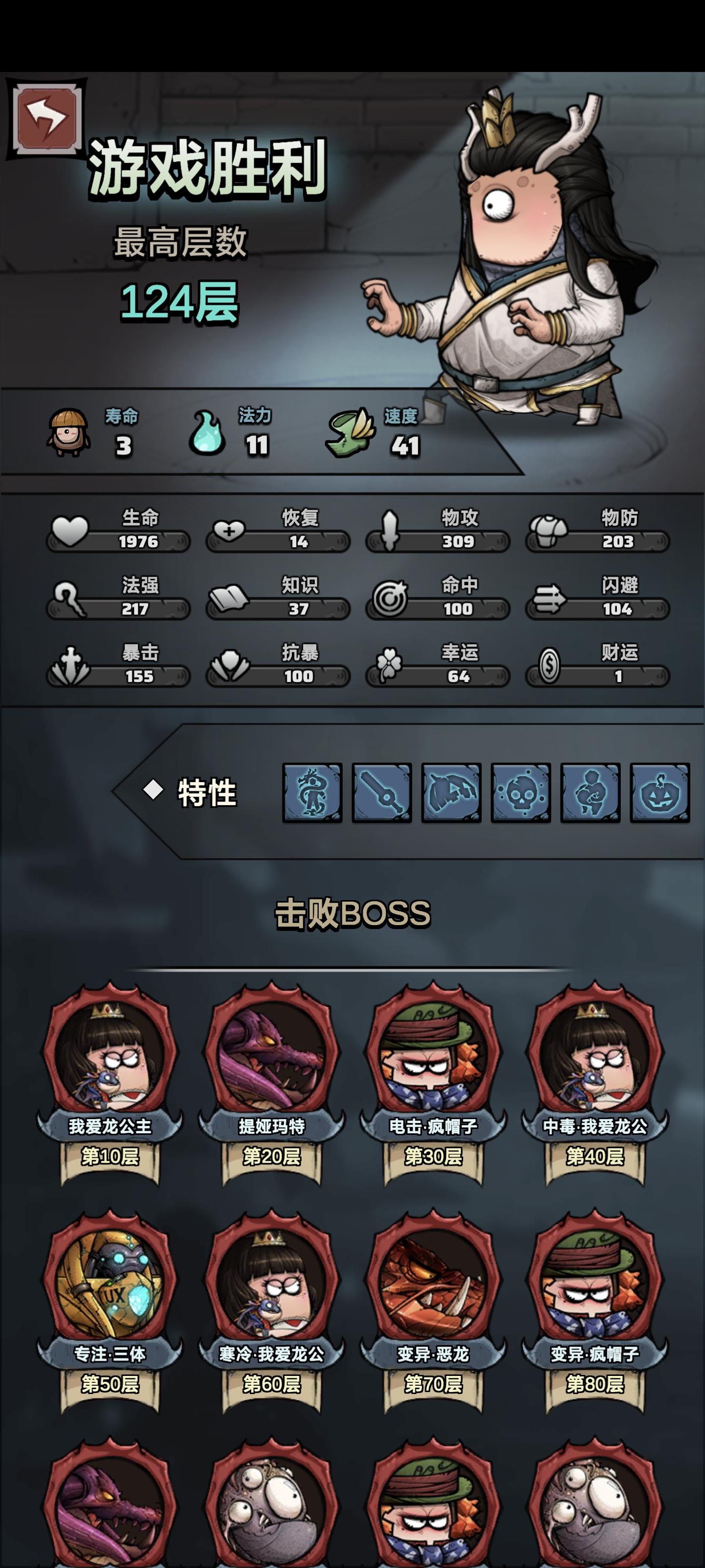 这把走的是盾反流,结果121,122两个BOSS给我上了一课。偷盾,全给对面加上了还好有秘密武器,法力药剂,驱散药剂,进化药剂和大圣棍子,不然121可能就挂了。虽然123BOSS把我秘密武器偷了,但我还有道夫鸟。这一把也是体验了一次一次下十层是什么感觉。两个字——无敌#代号肉鸽 #代号肉鸽流放之地
