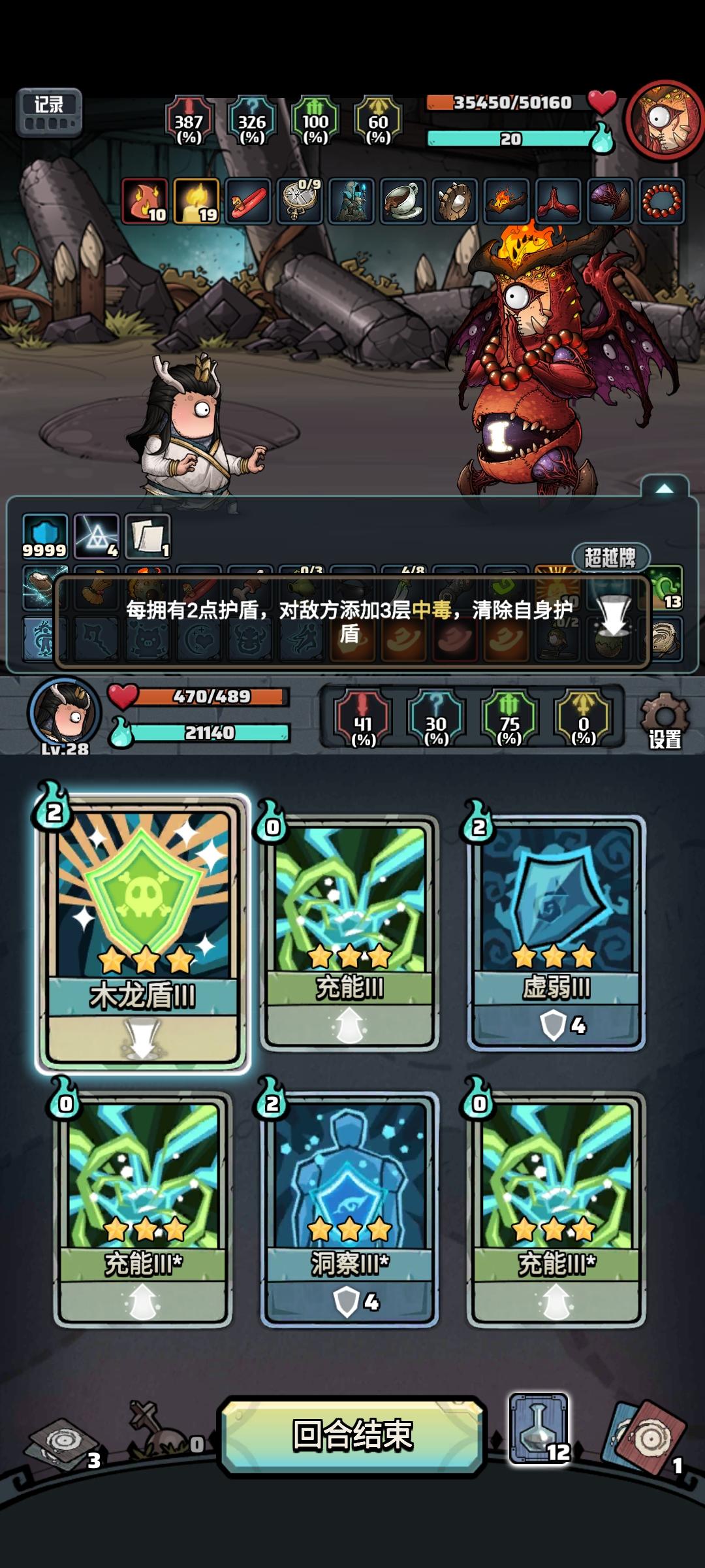 小破屋英雄也能刷遗迹了,初始必须携带魔法面具、超人雕像,牌组4费唤回,4费毒液翻倍,4费魔术,满级失控,满级汽水。套路理论:先添加一层毒(没有的话戴一张毒卡牌),喝汽水—翻倍毒—魔术—唤回,此时所有手牌都在手中,选失控进入托管模式,唤回第一张必须唤回,失控跟毒翻交替选,一回合9999。