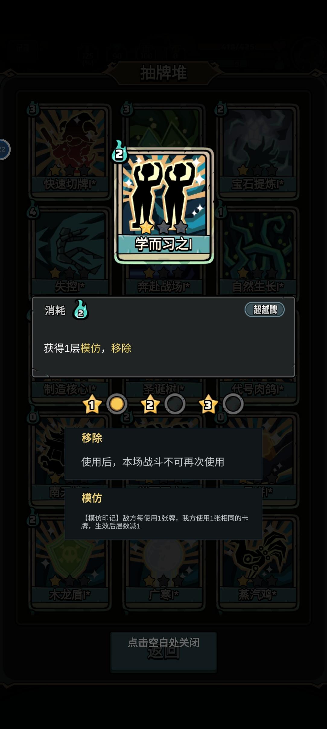 要啥没啥。荼毒天赋没拿到。天使面具也没拿到。使用瞬发牌免费使用一张牌也没拿到。金箍棒也没拿到。要啥啥没有。打到后面都不想打了。放弃还感觉可惜。想着后面会遇到后面会遇到,结果都通关了也没遇到。逼得我丢药水了都。#代号肉鸽