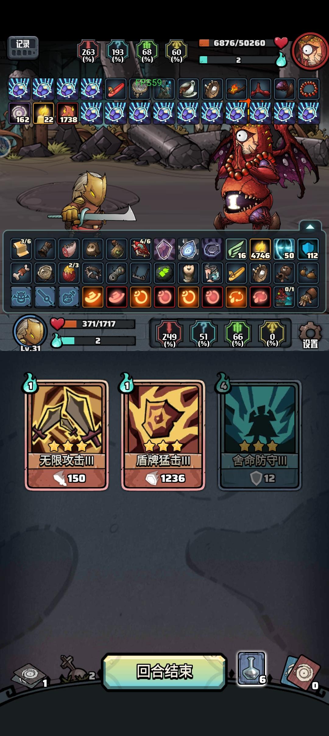 #游戏日常 这一把深渊下来666虽然最喜欢的魔法面具没有抽到,但是一点都不妨碍我顺利过关。121.122一回合过!驱散药水也没用上,道具卡拿太多了,根本用不完。