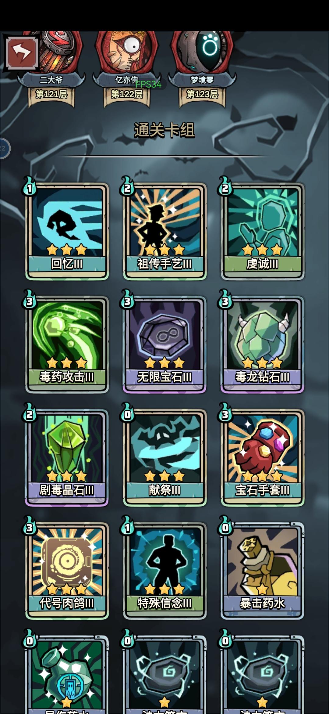 #游戏日常 这一把深渊下来666虽然最喜欢的魔法面具没有抽到,但是一点都不妨碍我顺利过关。121.122一回合过!驱散药水也没用上,道具卡拿太多了,根本用不完。
