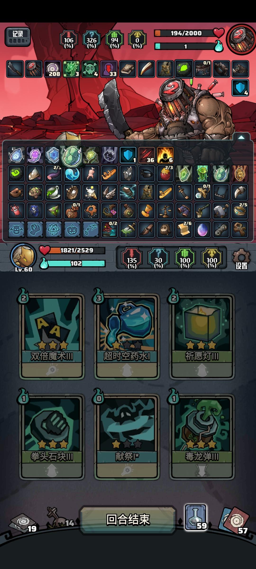 核心效果:失控(随机使用失控层数手牌) 核心天赋:牛脾气(卡牌不移除,减少5点生命) 核心宝物:蝙蝠牙齿(卡牌造成伤害回2点生命) 贵族匕首(手牌无牌时抽牌) 失控是可以无视法力和使用条件的,适用于高费和有条件限制的套路,例如无视法力和会心射击的子弹要求。 卡组组成失控+3张会心牌,一个循环内,6层失控刚好可以使用3张会心触发洗牌,再使用2张会心和失控,3张会心触发蝙蝠牙齿回复6点生命,弥补牛脾气