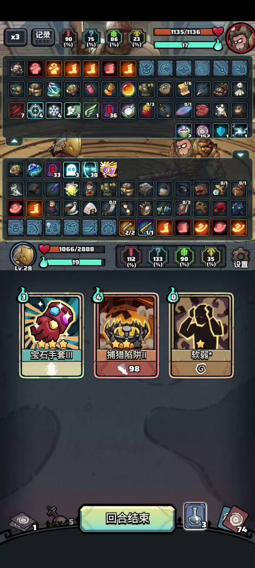 123层的克隆体有那个7回合结束的表。我这边开始的时候,也不知道啥情况,回合开始就显示已经用掉了一张牌,但是对面的复制球还是三次,然后我随便用一个道具复制球就还只剩下了1次,然后表好像就已经4/7了,再用一个道具,复制球没了,但是表已经6/7了。每回合我就一次输出机会,我想着用非阴非阳抢三张牌,在6/7的时候用了非阴非阳,然后不知道对面复制了啥,蓝库库往上飚。还好我也有个破表,不然就玩脱了。对面复