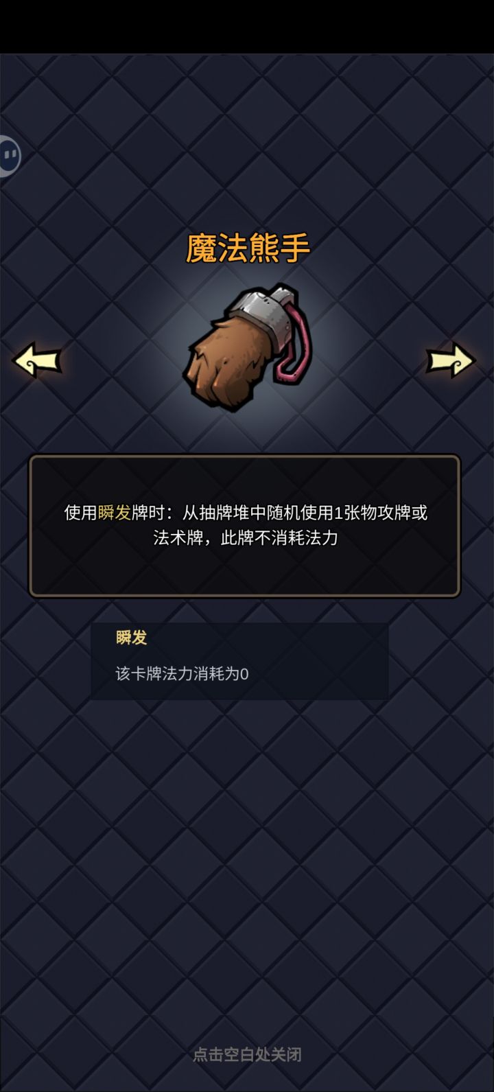 继上个攻略后 次攻略全面优化,已修复竞技场打不过,打BOSSboss会还手bug。(极其小概率翻车)攻略如下;核心宝物:火龙蛋 瞬发四件套(诅咒魔法石可有可无)核心牌 宝石手套 瞬发宝石 强攻宝石 基础 四种瞬发卡(只要数量 不升星 数量15-30张)人物建议:鸡基础牌;物攻卡:快速攻击有就拿(不合成)带会心词条卡拿4-5张足够,其他一律不拿。技能卡:快速上膛(不合成)瞄准(可合成)