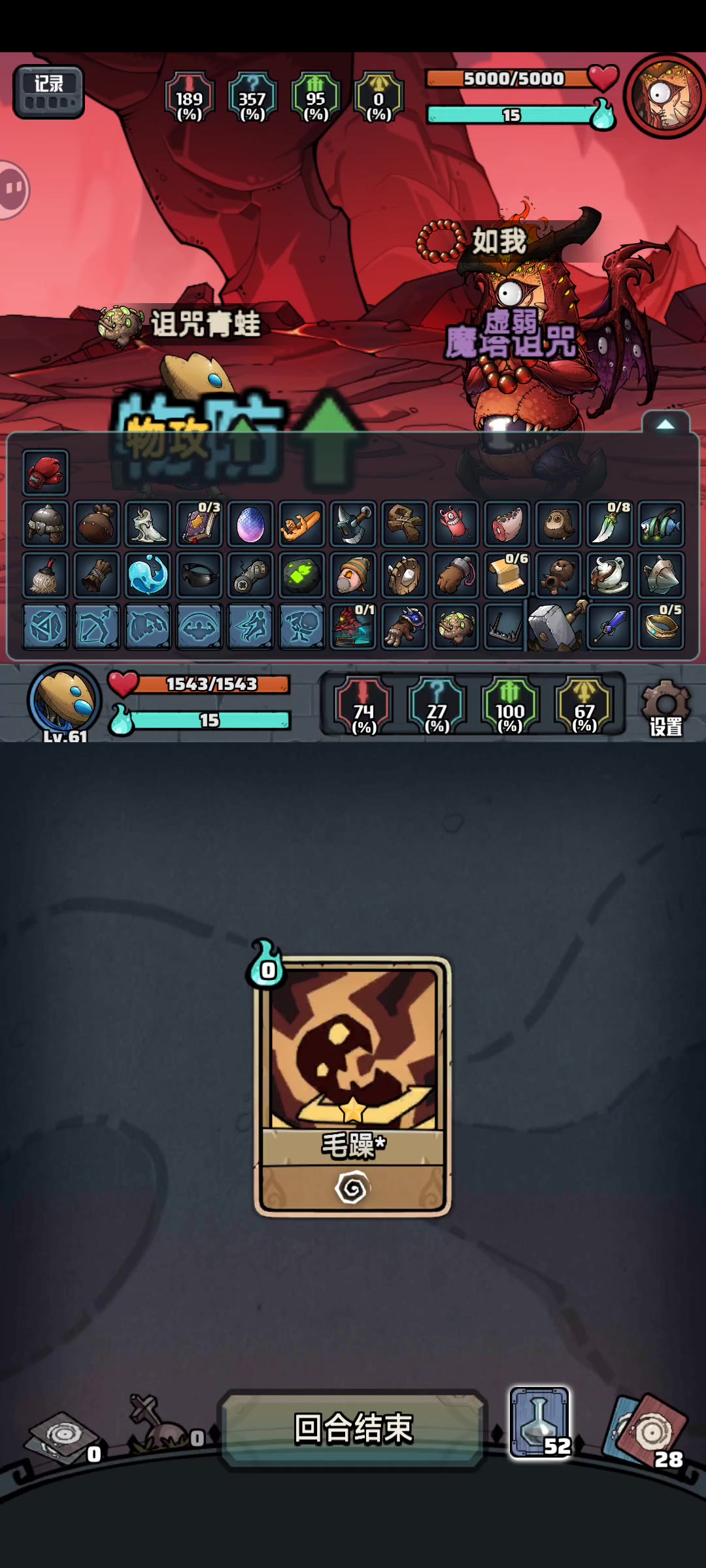 这是出bug了吗 小雷虫怎么不能抽满牌啊 还有回合结束也不让抽牌 真是服了 打啦一个多小时 道具牌都咱好多了 给我整个这出#代号肉鸽深渊之地