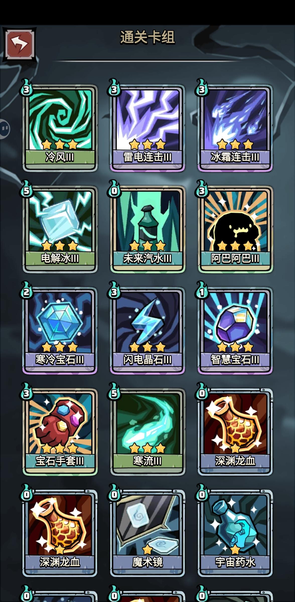 任务:生死对决 涂毒 还有一个随便宝物:没有生死对决 就拿开局加易伤的宝物 比如我拿的射手护腕 还有诅咒项圈 有生死对决也可以拿叠得快点 必须宝物:诅咒骨肉 这个把易伤转毒 主要输出手段 魔塔石像可以回蓝 骑士石像可拿可不拿 最后三个都偷盾 看自己手牌:小雷虫(2)快速思考(3星)宝石手套(3星)无限宝石 寒冷晶石 闪电晶石 冷风 电解冰 道具牌:炸弹(多多益善)备注:解释一下带冷风和电解