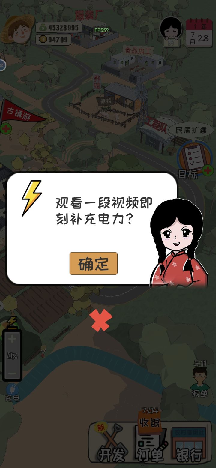 使用振兴农村(游戏中为稻花村,无法自定义名称)为主题的标准早期放置小游戏,注意,是小游戏。开头的PV有点意思,但游戏玩法上几乎仅有放置,我在玩了一个多小时之后,依旧只开了古镇旅游、农田、鱼塘、养殖场、食品加工厂几大块,除了点击派发订单+点击的基础放置功能外,就只从银行贷了50万(截止我放下手机停止游戏,还没到还款日),目前的版本来看,很难让我在次日还有登录的欲望了。