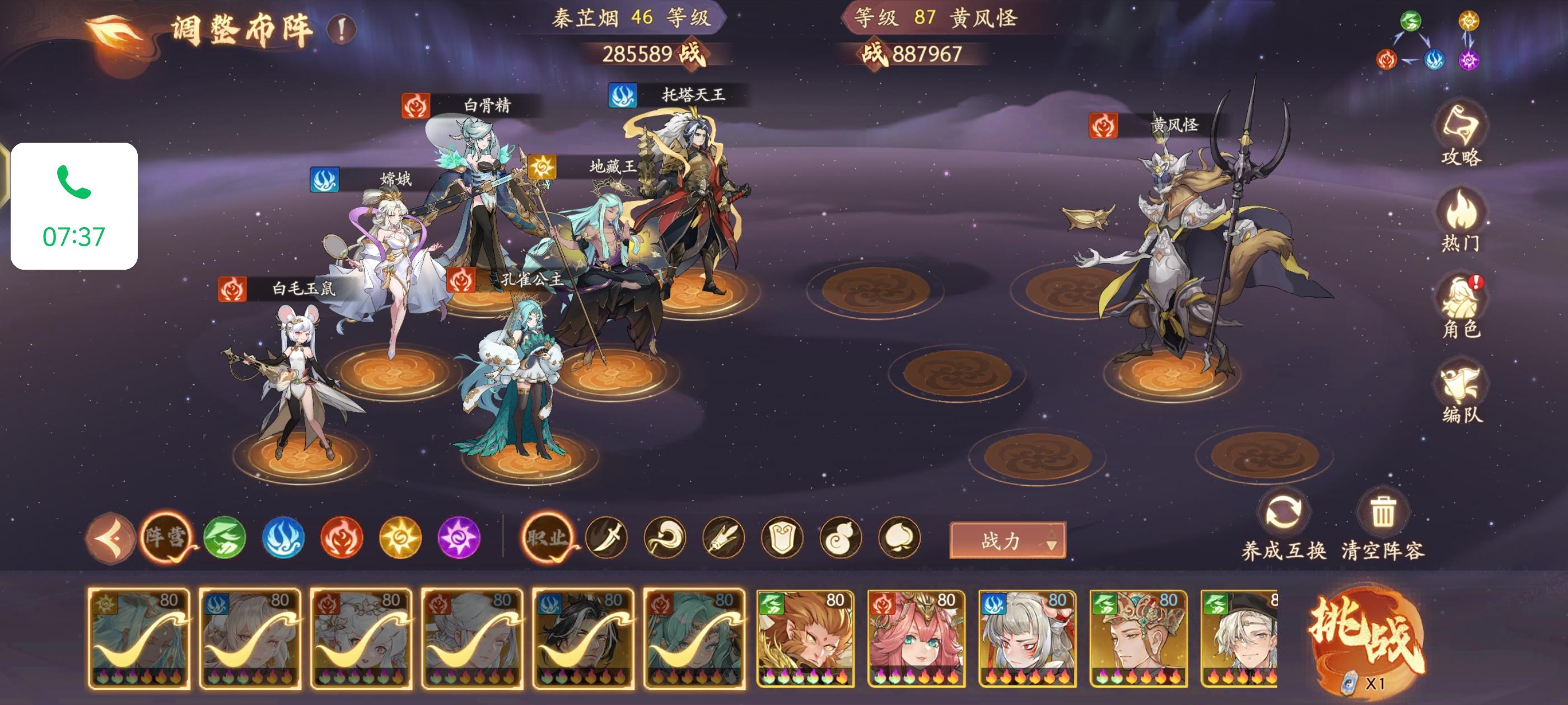 还没打的可以参考下,这个阵容挺稳。后排哪吒嫦娥白骨,前排鸡哥龙王孔雀。