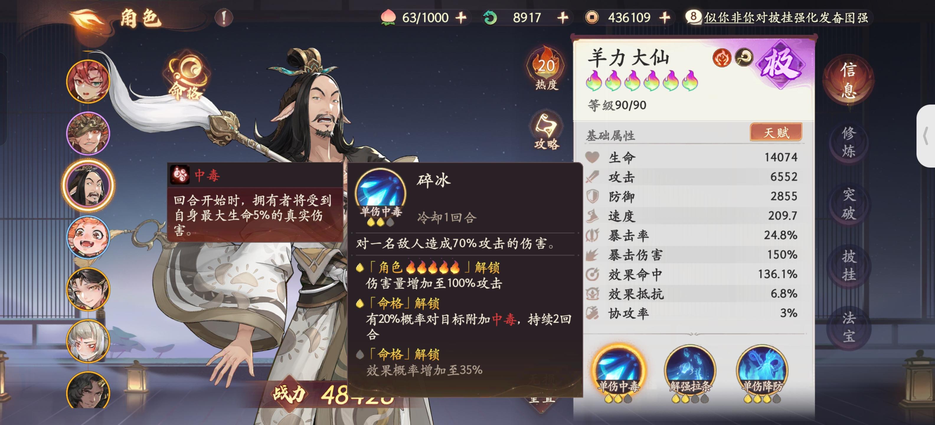 以当前版本热度来看,以下几名角色出场率最高,胜率最高,闯关时效率更高。 1.红孩儿红孩儿是一名后排输出,它不论普通攻击还是技能,都携带特有的灼烧伤害,但红孩儿并不是以此来作为自己的主要输出手段,它的怒气技能才是最大的杀器:对所有敌人造成爆发伤害并附加灼烧效果,减弱其行动值。配合一技能的增强攻击buff,红孩儿的输出十分爆表。由于有有群攻灼烧效果,红孩儿无论是打竞技挑战同等级,同练度的玩家,还是挑战