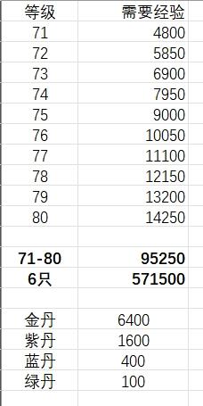 角色70升80经验表