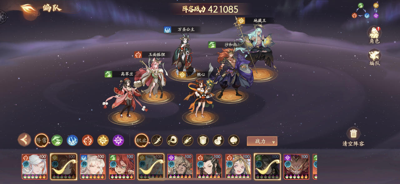 如图 一是记录 二是思路 思路: 1.核心:速度流,红衣拉到最满速,我本人红衣212速 2.逻辑:红衣拉速度,给狐狸加速,狐狸给全队加速。 3.输出:保持嫦娥第三速度,把攻击加起来,地藏王收割全队。 4.辅助:阎王满速,抗击对方一个技能,第二轮完全收割。 5.突破点:奶位置可以换燃心,增加团队收割能力。 6.其他:可以把奶位置换猪八戒,蜘蛛精等功能卡。有意外惊喜的效果。 装备:主拉速度。出