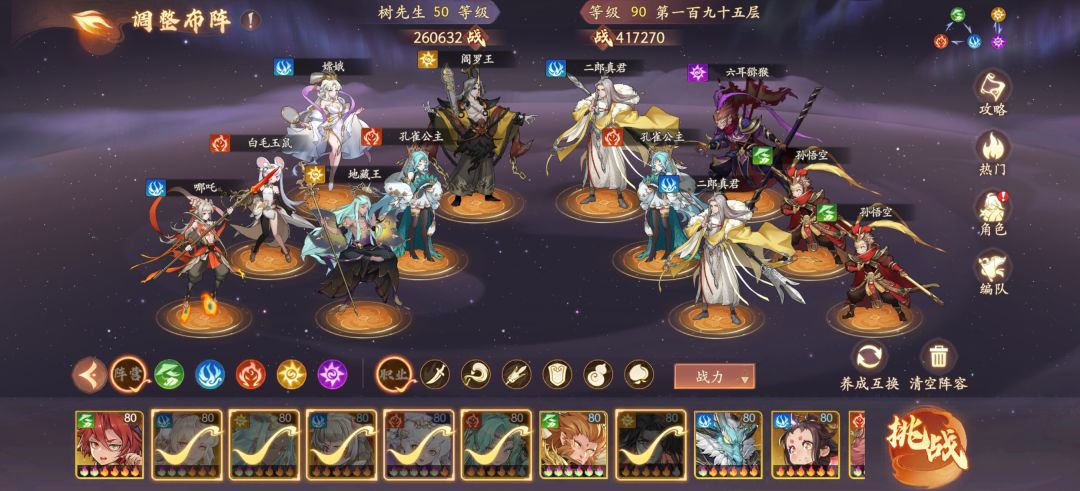 阵容拿走不谢 地藏:全体破防(我的只有5火) 嫦娥:加攻(我的只有1彩) 红孩儿:灼烧后排(3彩) 孙悟空二技能:降后排血条(3彩) 燃心二技能:降后排血条(4火) 主要核心是红孩儿 孙悟空和燃心可以用能够群攻到后排的代替 谁的星高伤害高就用谁