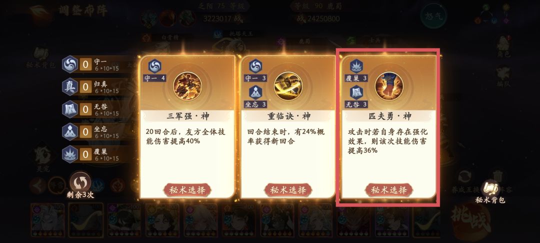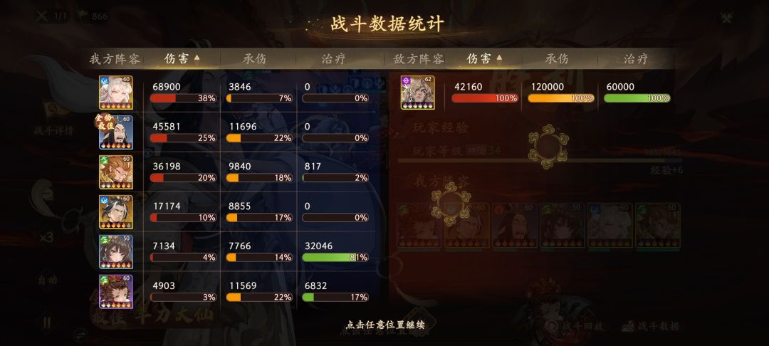 这关很简单,注意左右两边小怪别打,后面牛魔的二阶段拿来分摊仇恨,不打牛魔王他就不会反击,可以托回合给治疗回状态 托塔和笔灵可以免疫减抗,孔雀可以清减抗,南极复活,十字吃孔雀减CD,21w战力随便过