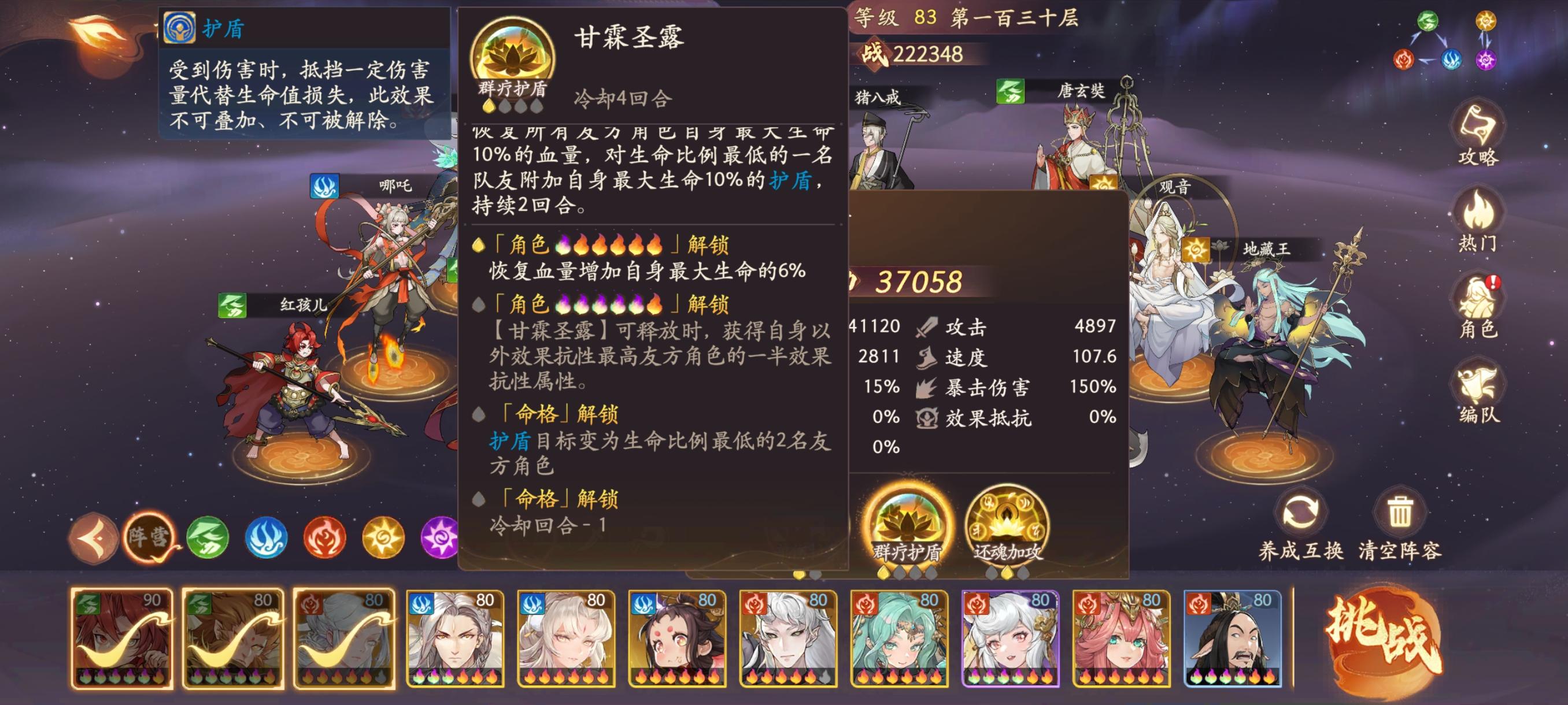 如图,是个奶妈+复活,感觉效果尚可。为什么一大帮人都想“抽完观音弃坑”?我感觉以下角色更值得期待啊:煞剑龙女、雷祖(电母常提到的)、后羿(目前是残魂)、蚩尤(目前是阎罗王)、觉醒·经书……如果该游寿命够长的话,应该慢慢都能见到#游戏杂谈