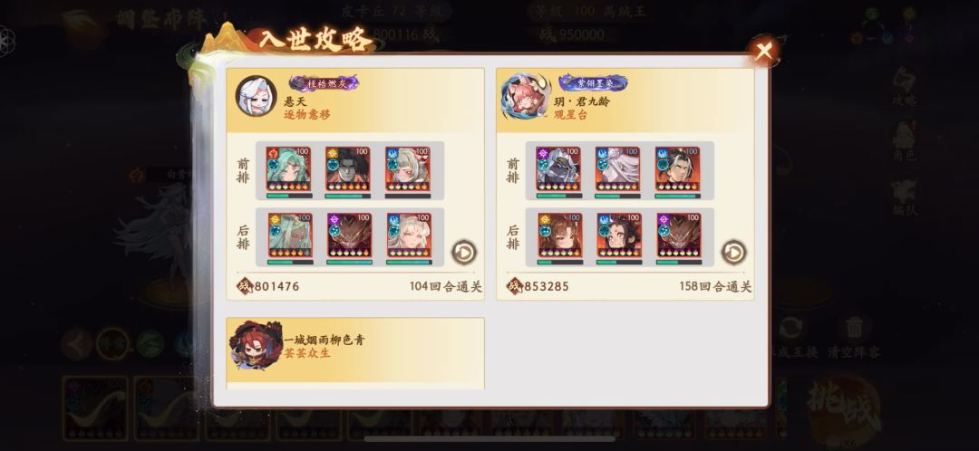 1出手反击地藏破防 2出手反击嫦娥+攻清小兵 3号位任意倍率高点的c位带爆伤套点了命格就能秒小怪 4出手白骨带铁杆补刀 完美收官8回合, 够肝全0星盘也能8回合