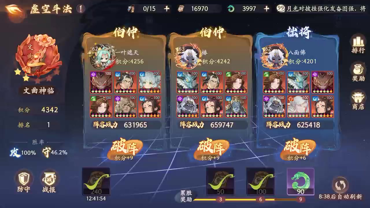 狐狸1速 白骨2速放大秒人+攻 和尚3速给对面推条禁强防龙王同时让白骨吃掉对面龙女被动 地藏4速全体破防+破托塔识破 玉兔+燃心核爆清屏