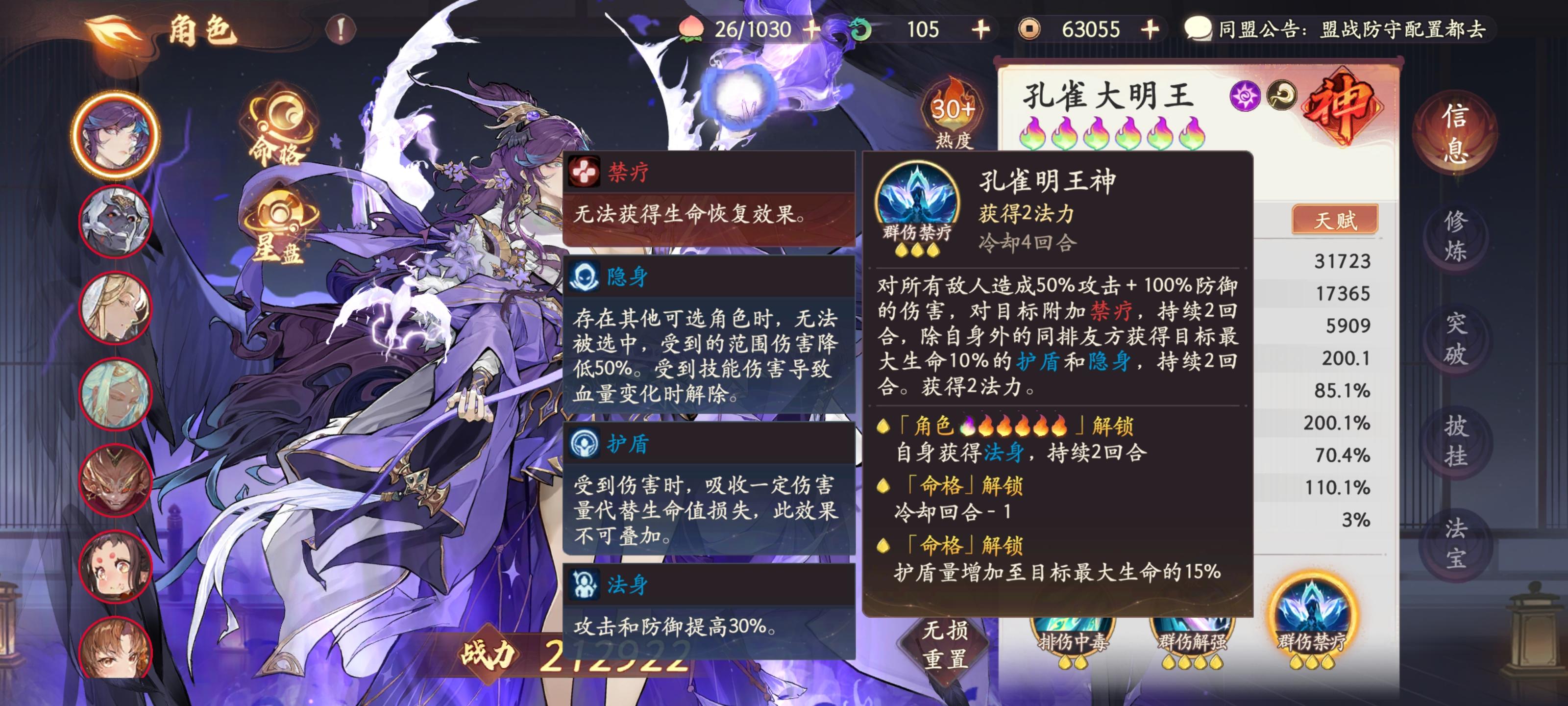 速度孔雀怕的不是清强,是无法强化,包子妹刚好众生,一沉默马上触发二技能就能把无法强化解了,然后龙王就能给队友加到防御了,就算被破防那一加防一减防差不多就抵消了,我速度套孔雀速度跟上来开大招连招触发给后排隐身,隐身减50范围伤害,刚好破解白骨二技能,无事发生,就是不知道龙王加防机制和包子妹解弱机制谁更优先,当然更简单的方法拿蜘蛛龙女地藏或者燃心,靠bp了